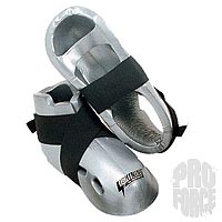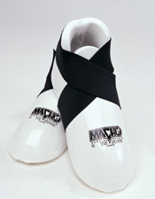 Patented laceless design with stable criss-cross strapping. Radial reinforcements at stress points. Bottom vinyl strips for secure fit. Made in USA.